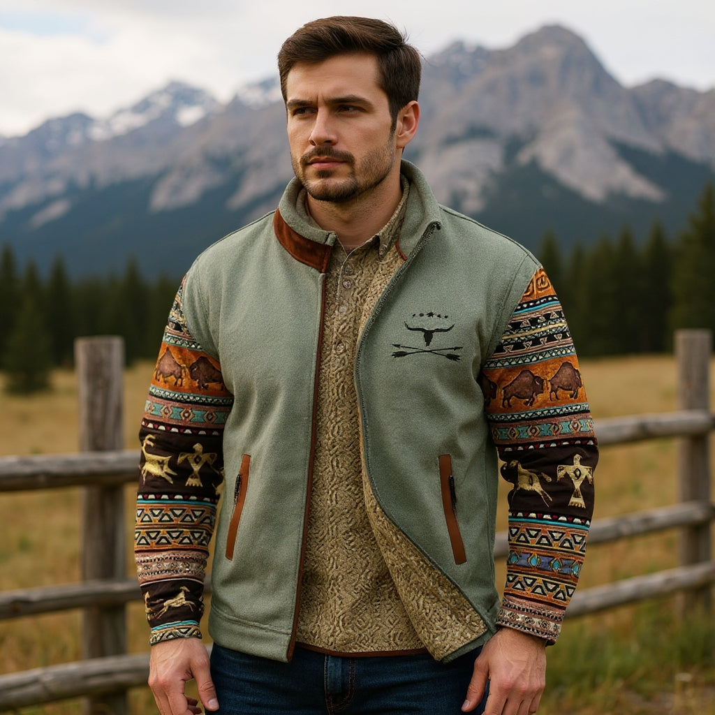 Artystyczny Design Ethno: Unikalne motywy na rękawach i piersi nawiązują do plemiennych tradycji i zewu natury. To detale, które przyciągają wzrok i nadają Twojej stylizacji głębi oraz autentyczności.