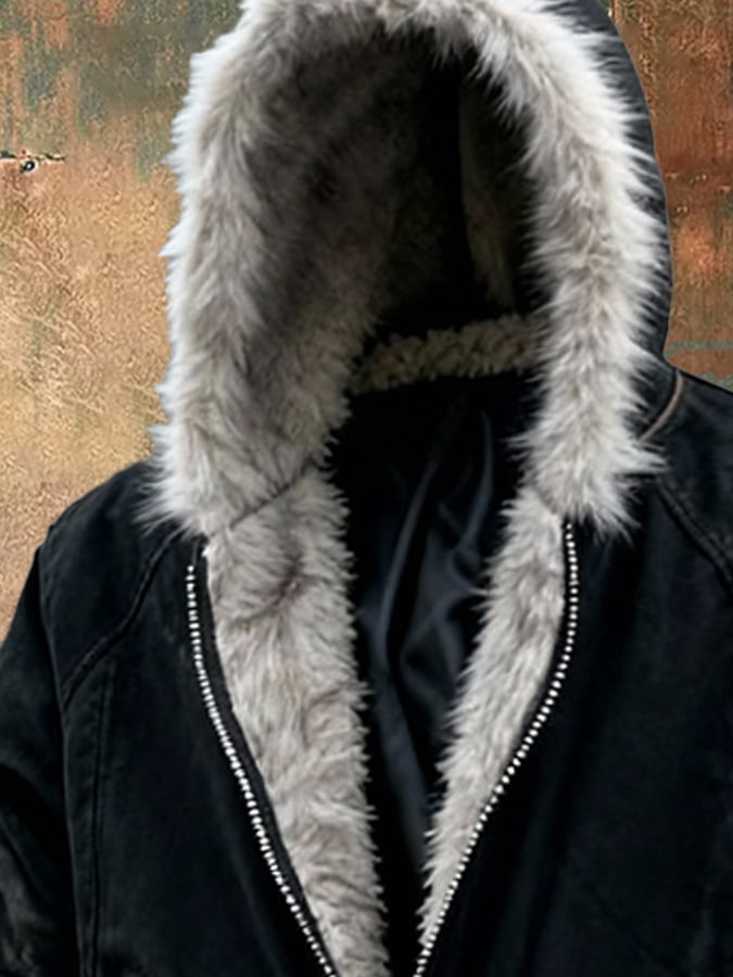 RUGGERI MILANO™ | KURTKA Z ZAMSZOWEGO MATERIAŁU Z KAPTUREM Z FUTRA oferuje idealną równowagę między otulającą ochroną a kontrolowaną elegancją.