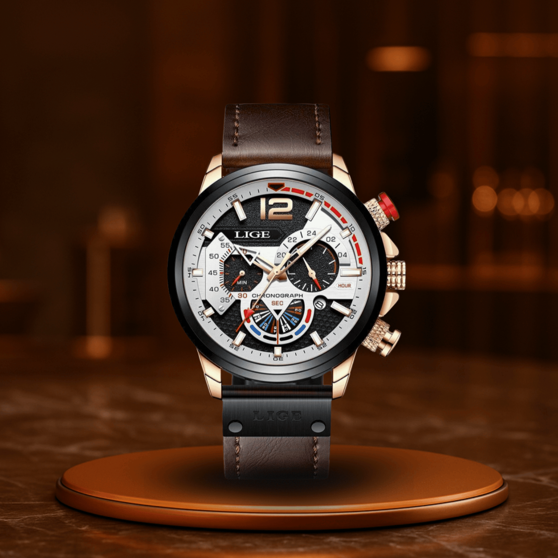 Vanguard Pro to idealny zegarek dla mężczyzny, który nie zna ograniczeń – i nie akceptuje utraty komfortu podczas trudnej przygody. Z dokładnym mechanizmem kwarcowym, uderzającym wyświetlaczem chronografu i wskaźnikiem daty, ten zegarek jest tak solidny, jak i stylowy. Wysokiej jakości skórzany pasek nie tylko gwarantuje komfort, ale także nadaje twojemu nadgarstkowi elegancki wygląd, podczas gdy wodoodporna konstrukcja zapewnia, że ten zegarek pozostaje niezawodny w każdych warunkach.