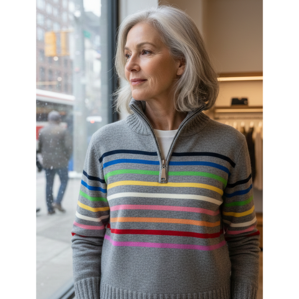 Vienna | Rainbow striped zip-up sweatshirt