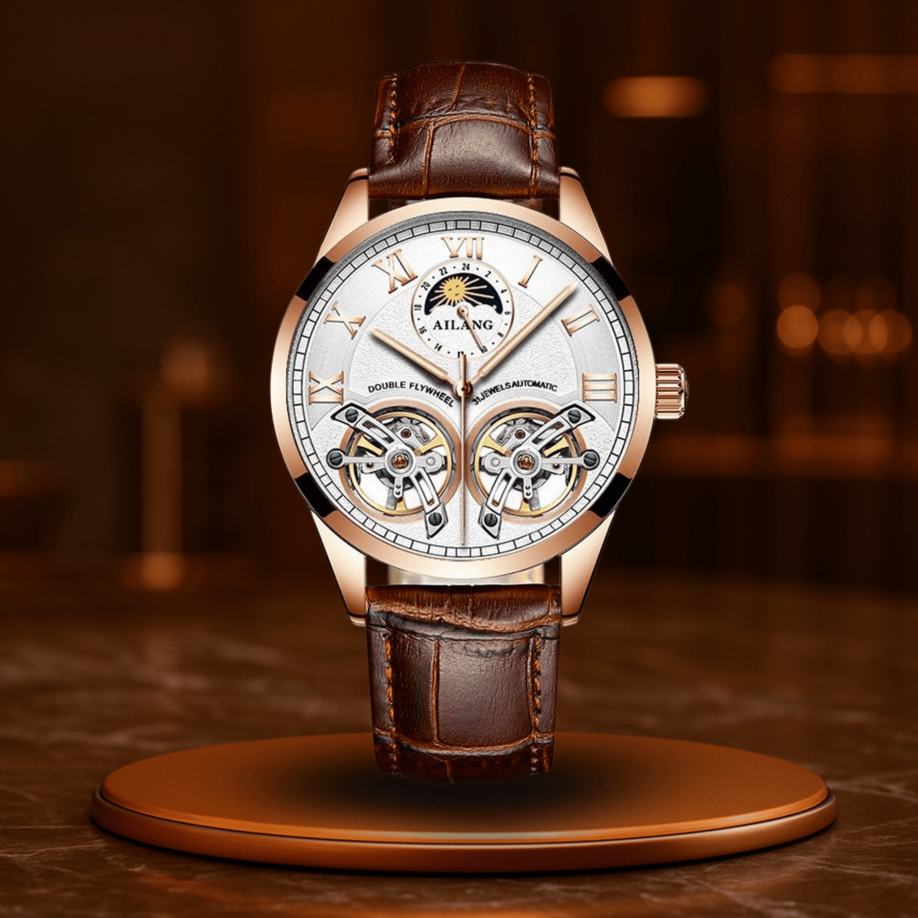 Luksusowy skórzany pasek delikatnie obejmuje nadgarstek, podczas gdy koperta o średnicy 41 mm doskonale równoważy elegancję i obecność. Wyświetlacz faz księżyca? Subtelne nawiązanie do niebios – dla mężczyzn, którzy myślą o więcej niż tylko o spotkaniach.
